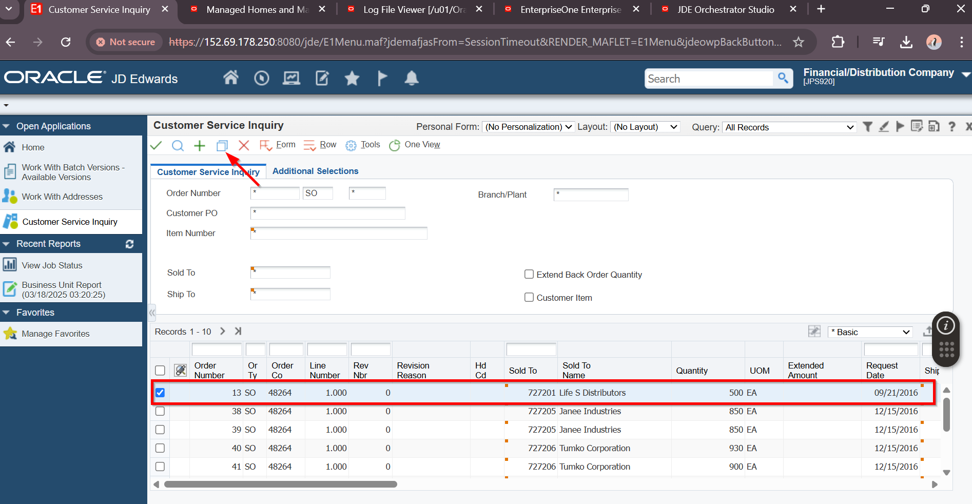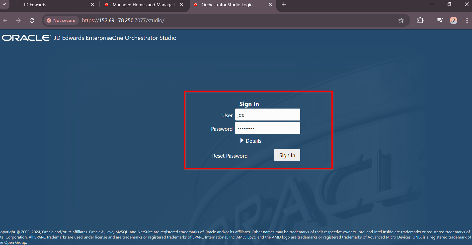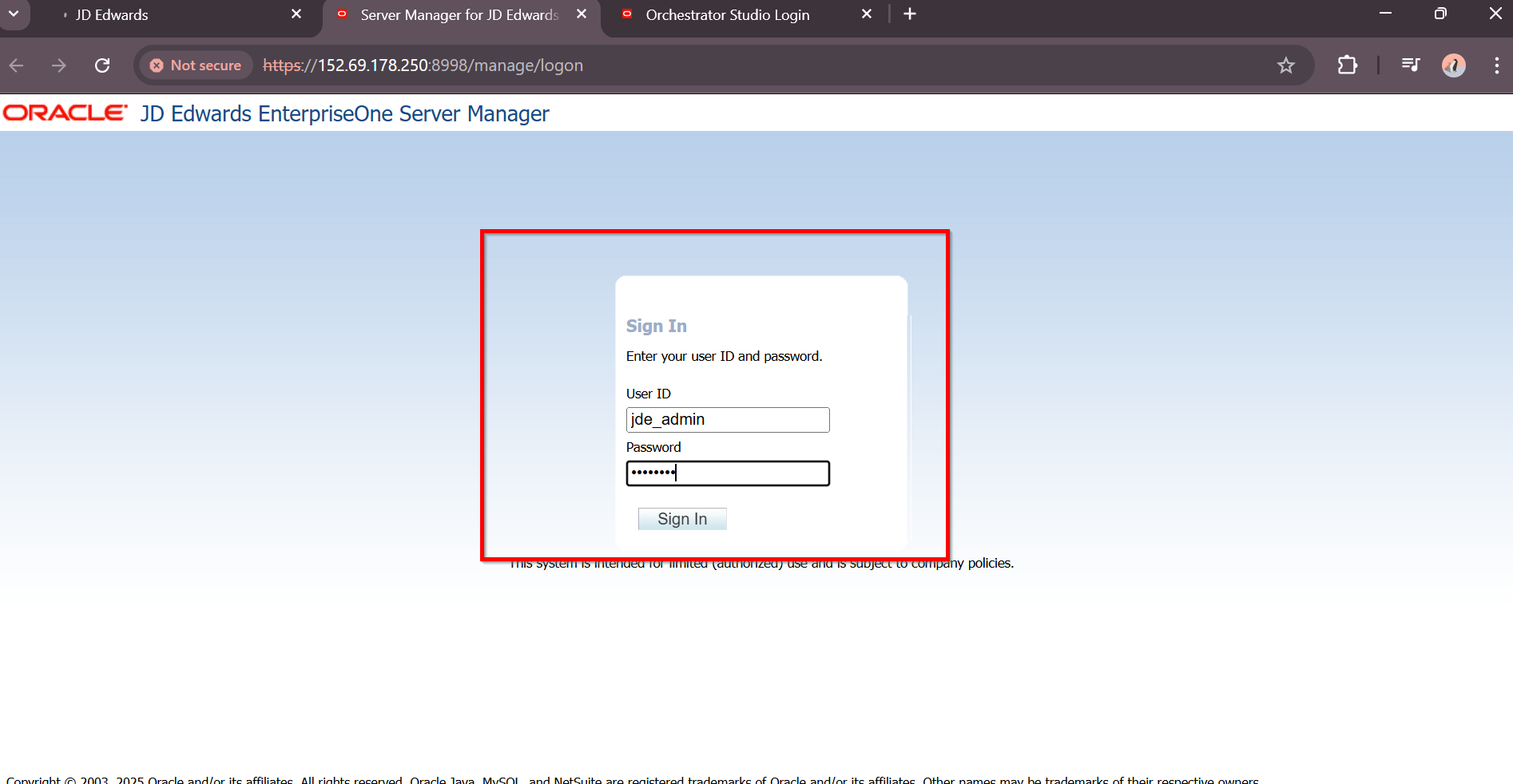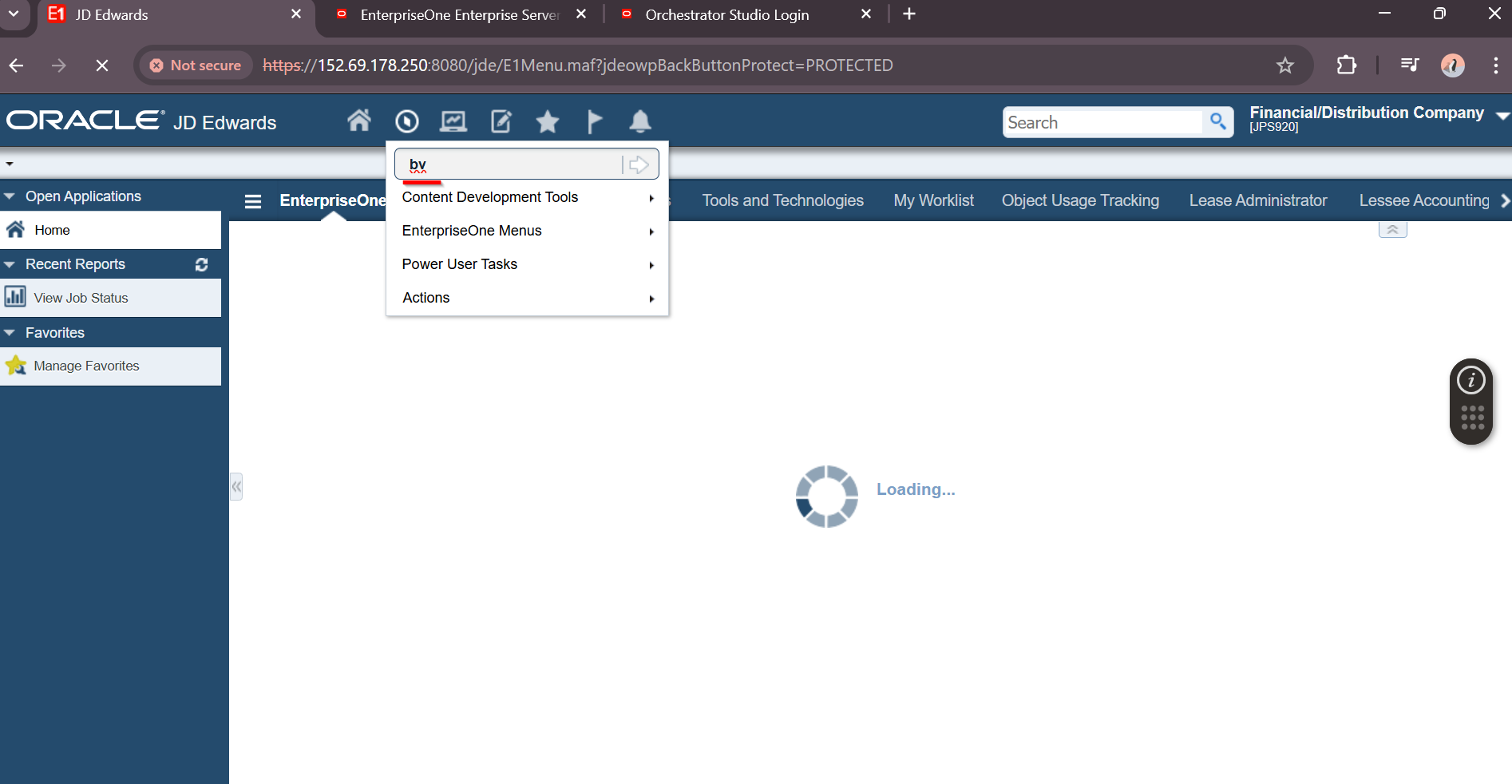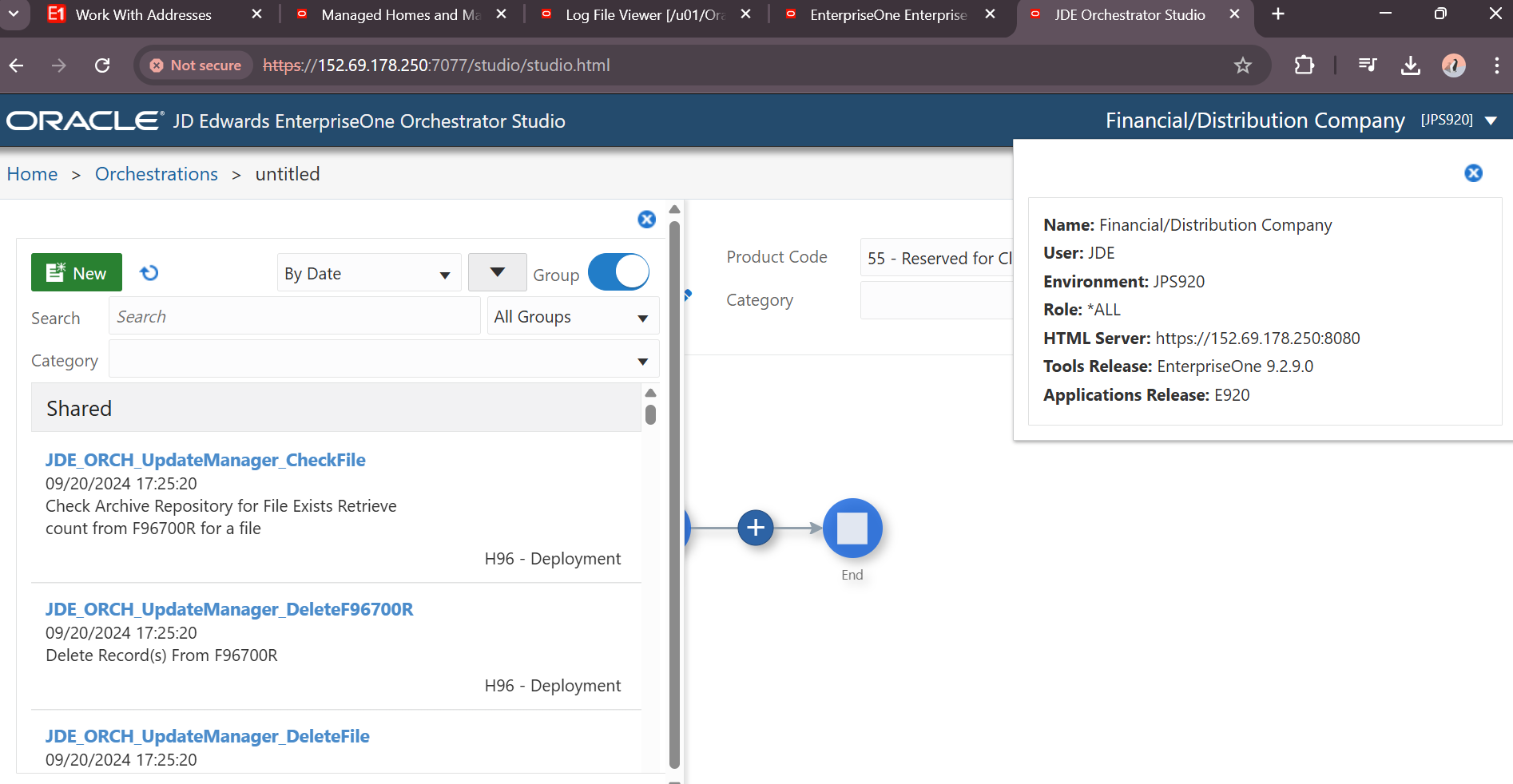 Navigate to appropriate URL to review JDE Orchestration Studio