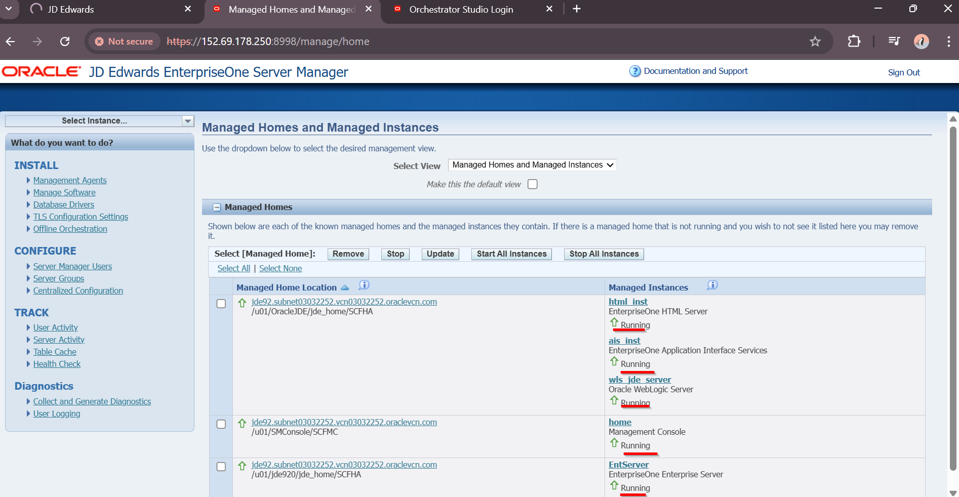 Navigate to appropriate URL to review JDE Server Manager