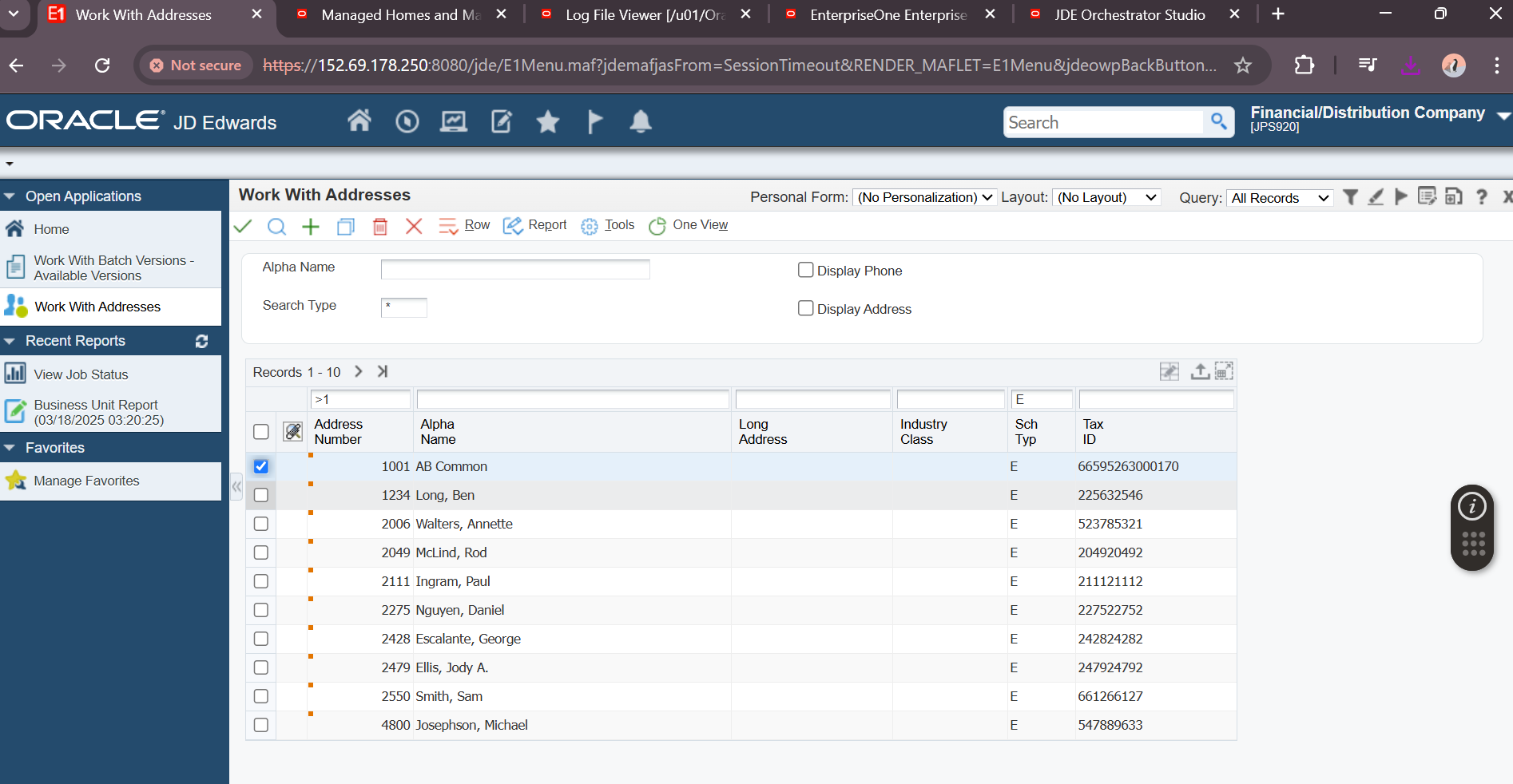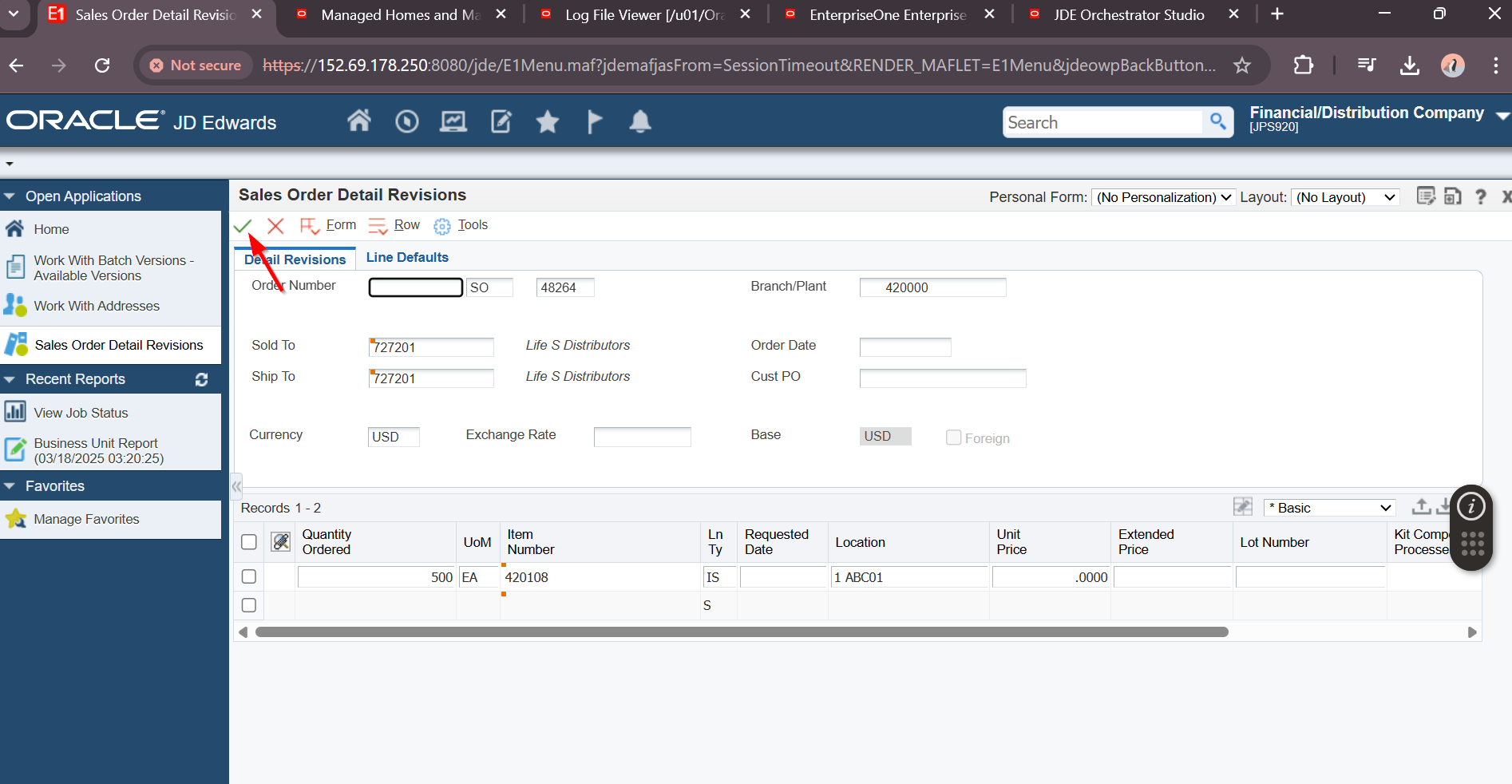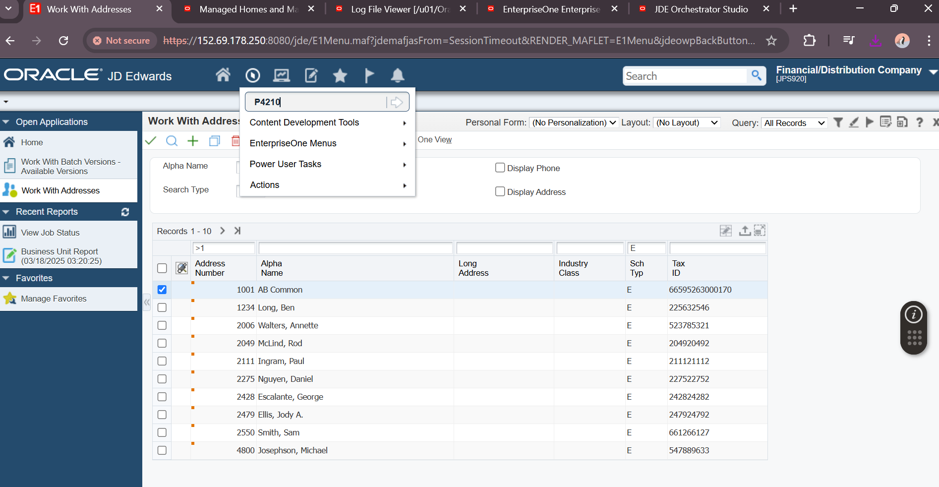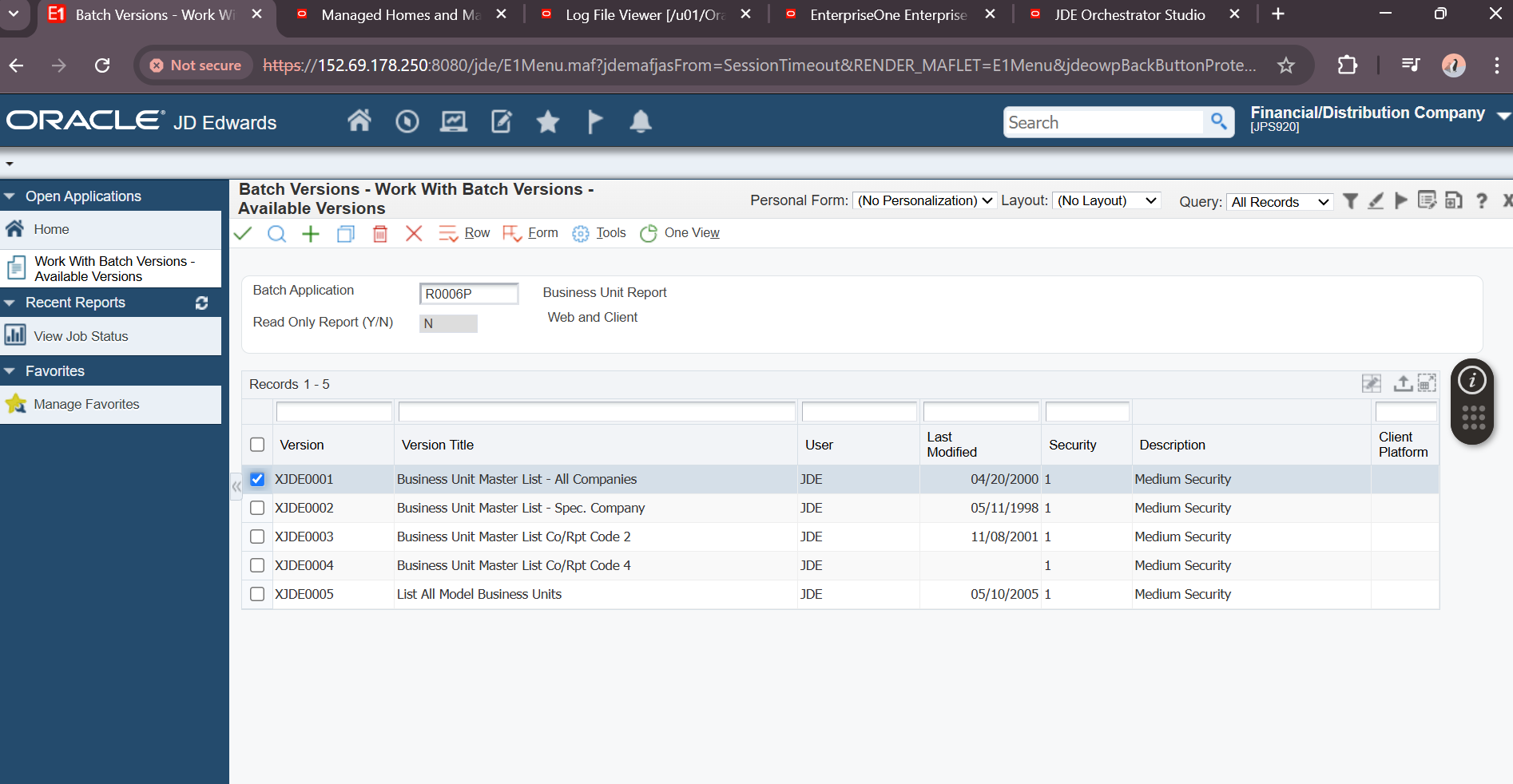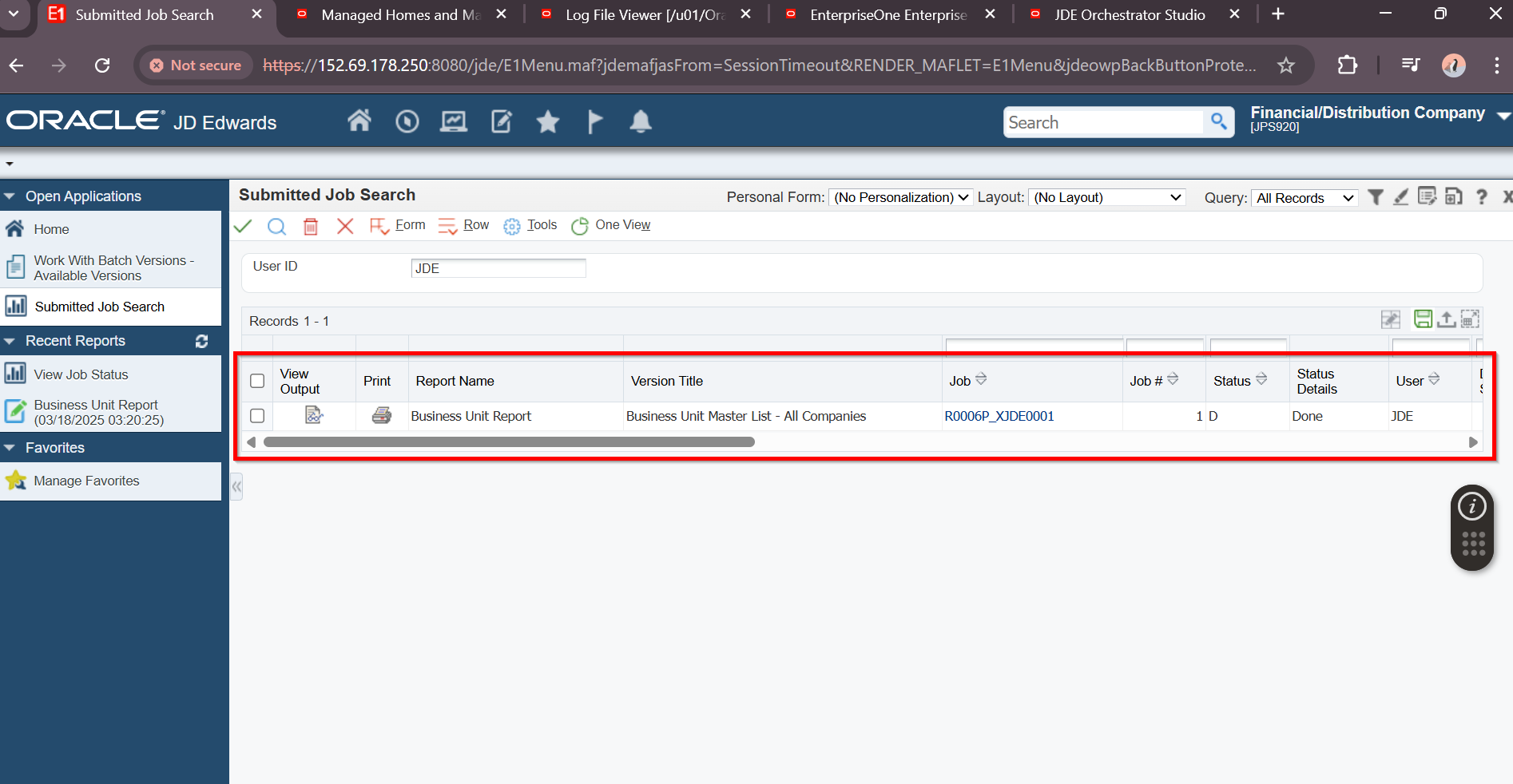 JDE User Password: ********