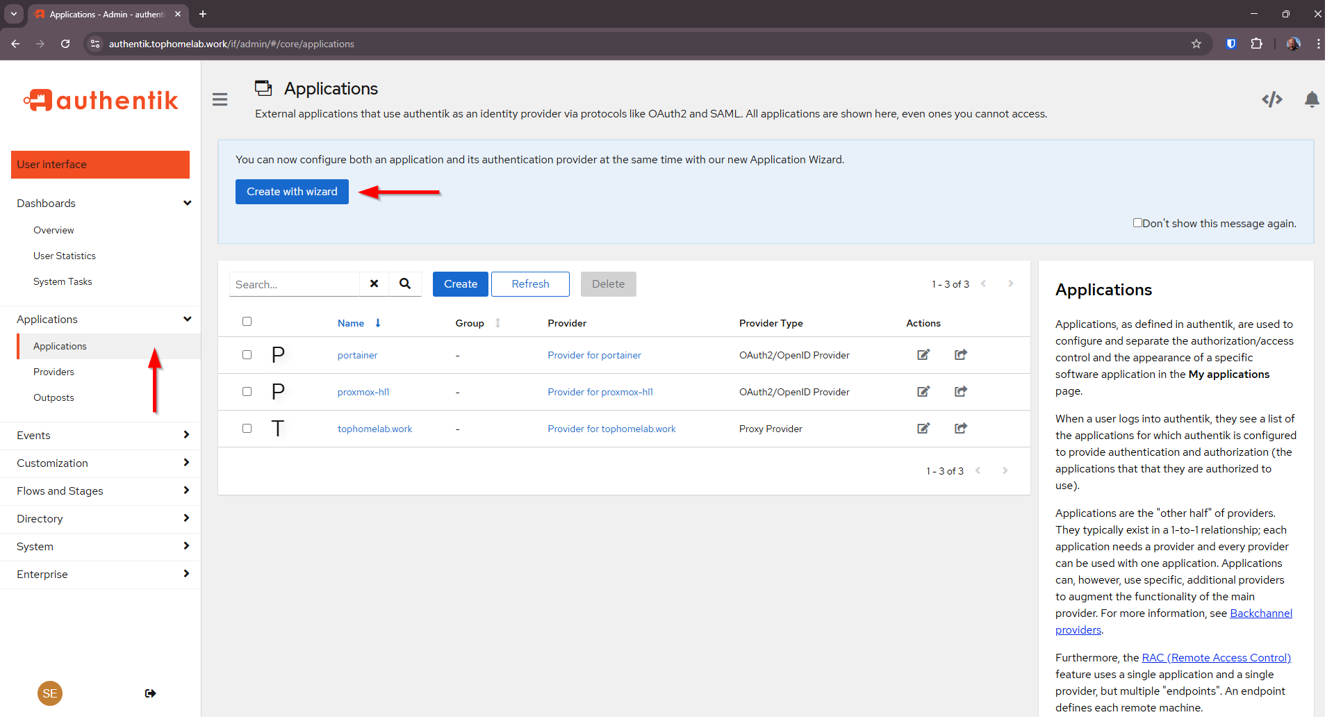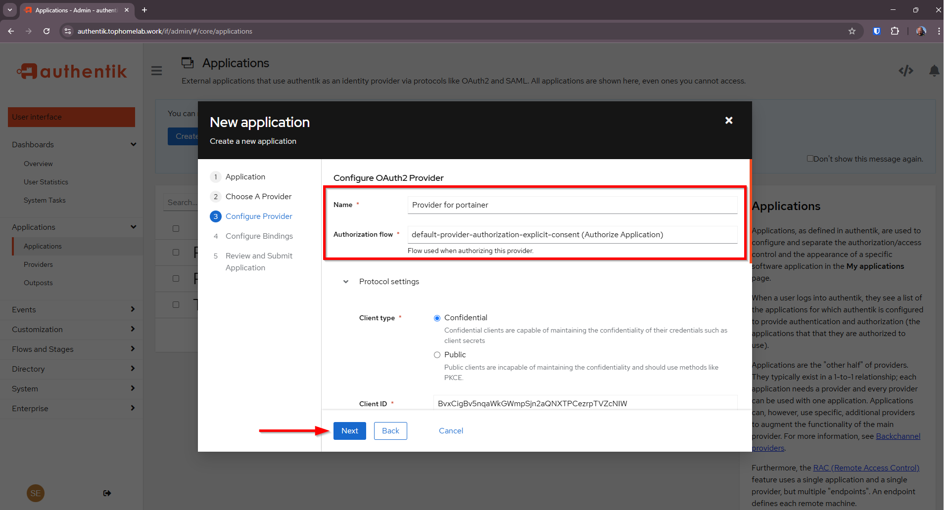 Create OAuth Provider and Application with Wizard