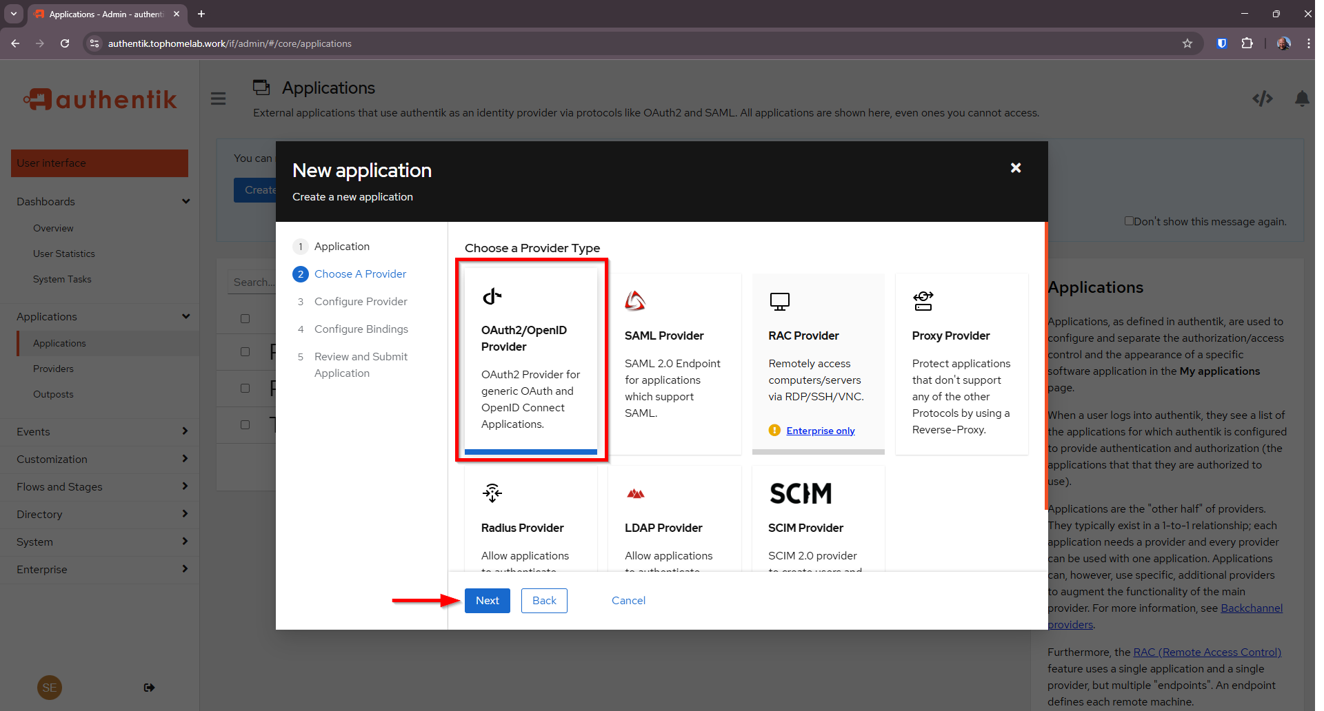 Select OAuth2/OpenID Provider and click Next